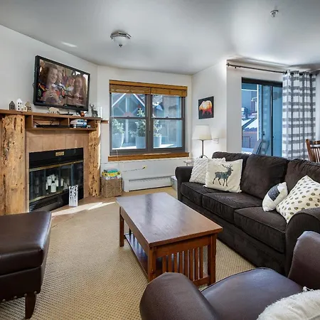 Die 54 m² große River Mountain Lodge Colorado Trail Condo: Ski-In, Downtown Breck Breckenridge liegt im Stadtviertel Historic Downtown von Breckenridge 13 Gehminuten vom Skigebiet Breckenridge entfernt und bietet seinen Gästen einen Jacuzzi und einen Whirlpool zum Entspannen. Dieses Apartment bietet eine Terrasse und liegt 500 Meter von der South Main Street.